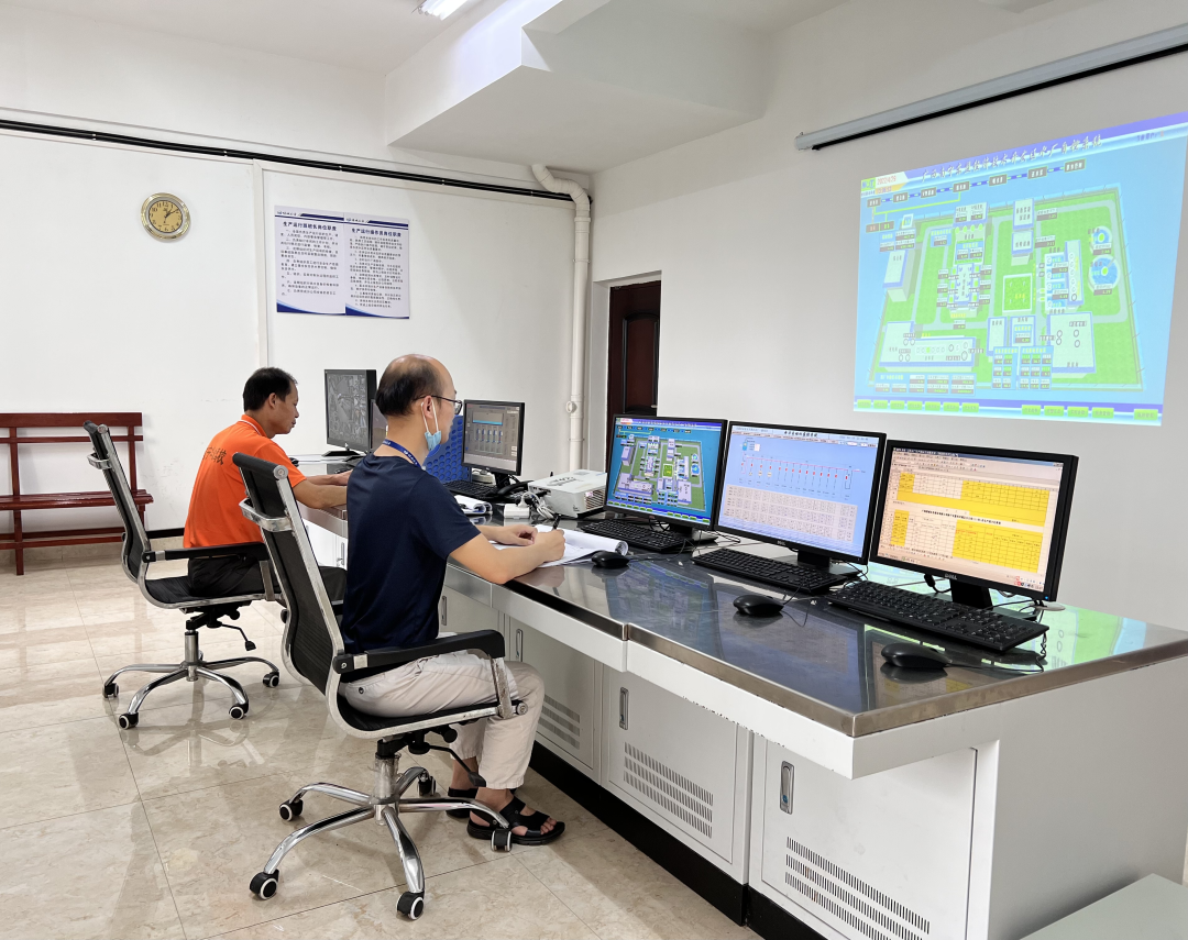▲東盟經(jīng)濟園分公司中心控制室遠程監(jiān)測水壓 駱柳新攝