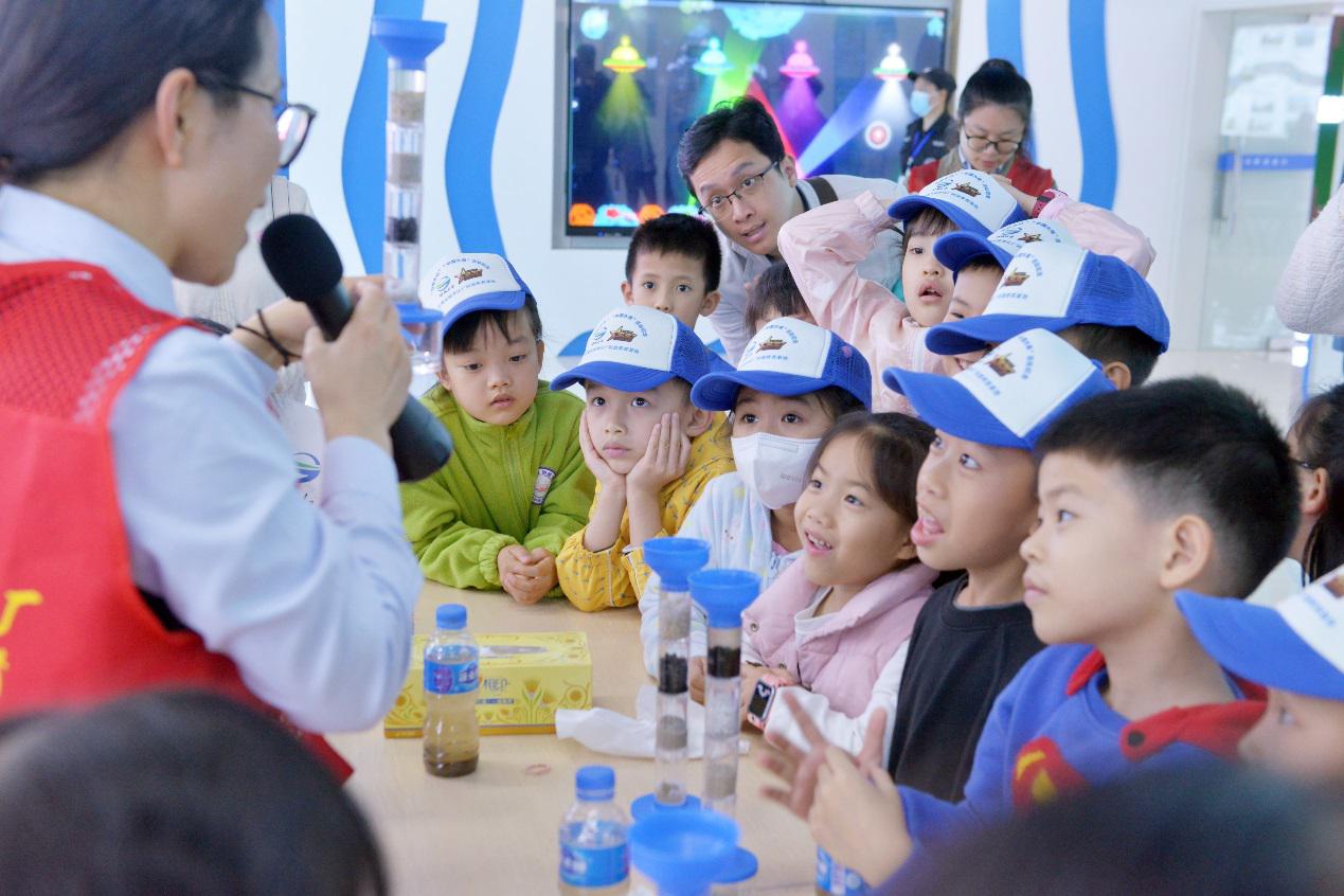 在水科普館,孩子們與講解員一起參與了水科學(xué)小實(shí)驗(yàn),通過親自動手操作凈水科學(xué)實(shí)驗(yàn),更直觀地感受到“干凈水”的由來。在垃圾分類宣傳陣地,孩子們利用陣地中的道具開展垃圾分類競賽游戲,在歡聲笑語中加深了對垃圾分類的認(rèn)識。
