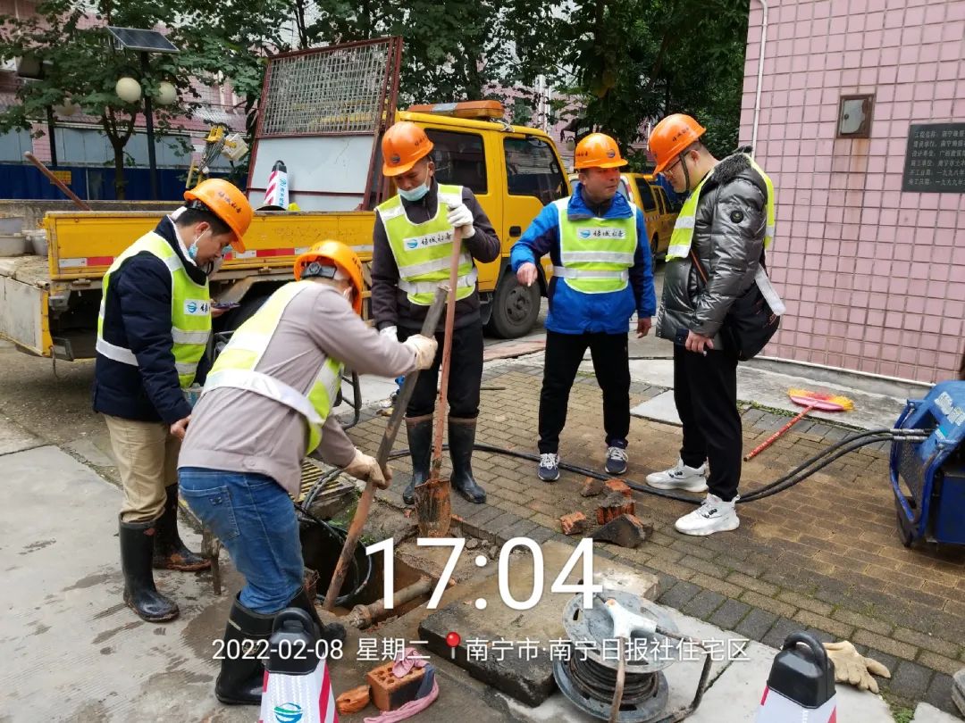 管網(wǎng)管理處“水超人”黨員先鋒隊義務(wù)為匯春路南寧日報宿舍表后管修漏